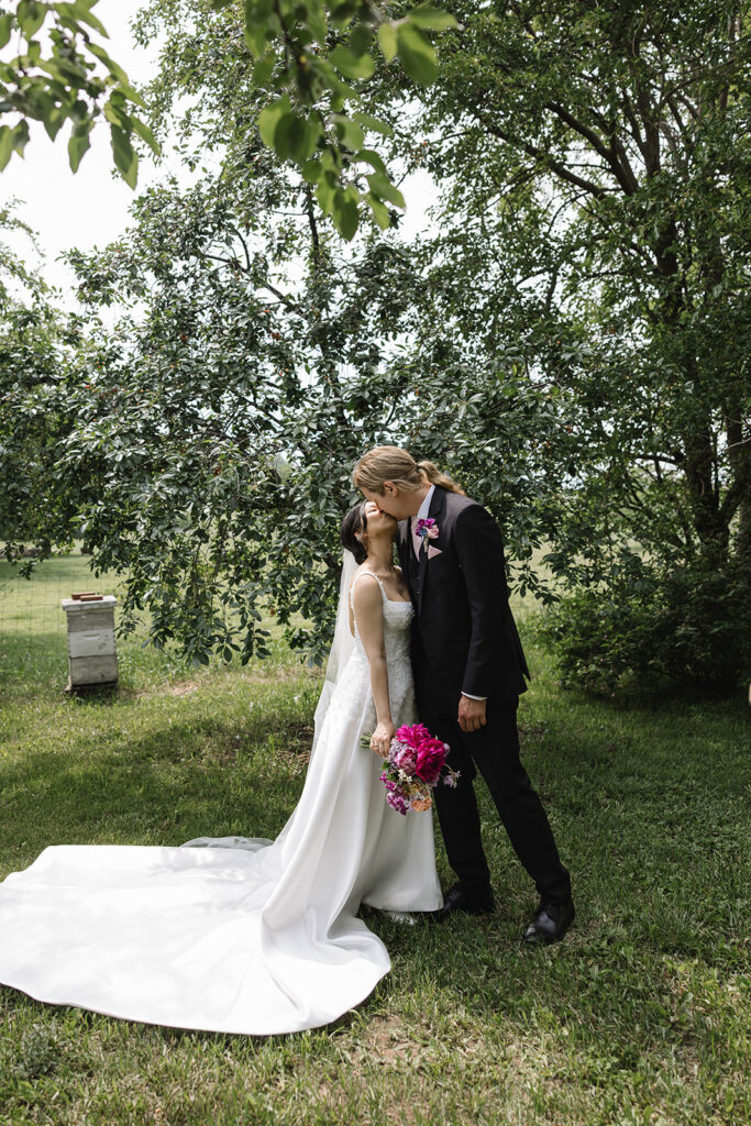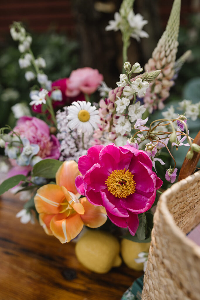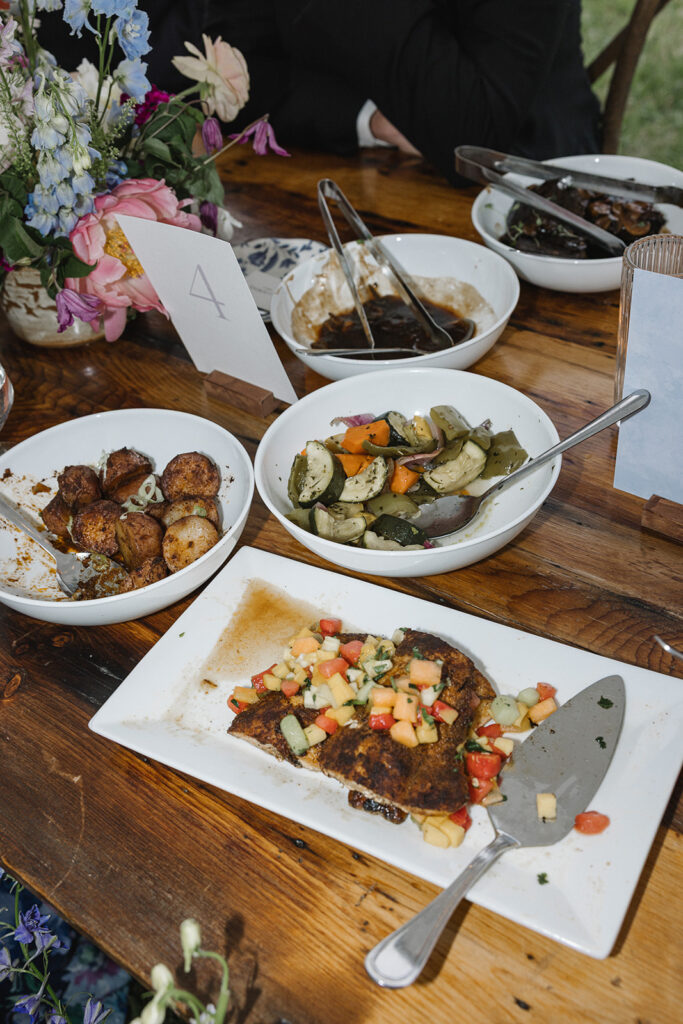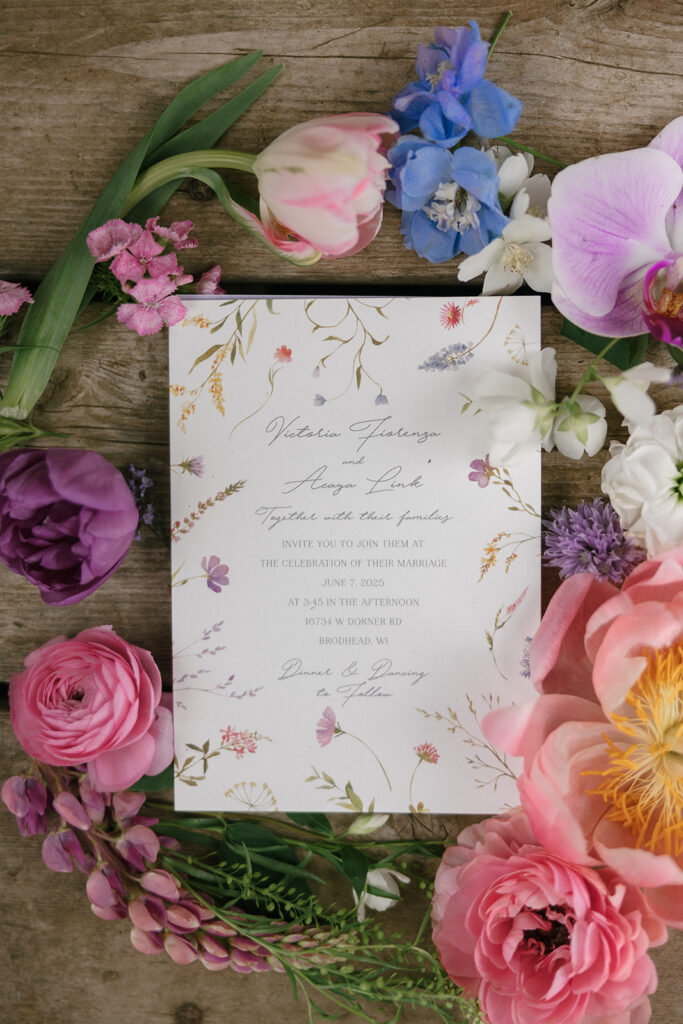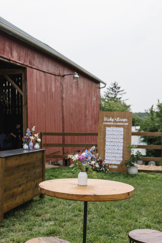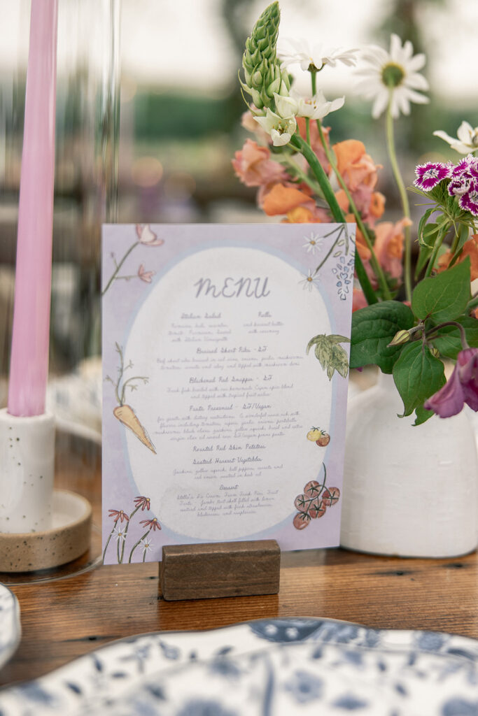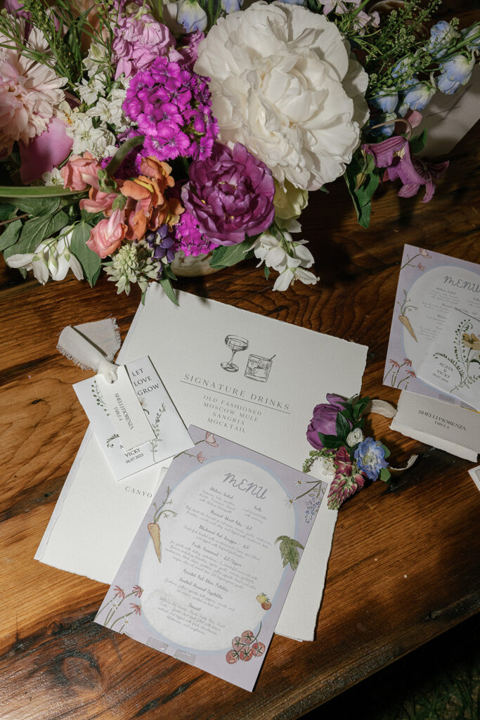 Vicky and Acaya’s stationery featured a fun, whimsical hand drawn watercolor design with elements from the farm and wildflowers woven in. The flowers provided by Sunborn Gardens created this cohesive, joyful vibe that carried throughout the entire day.