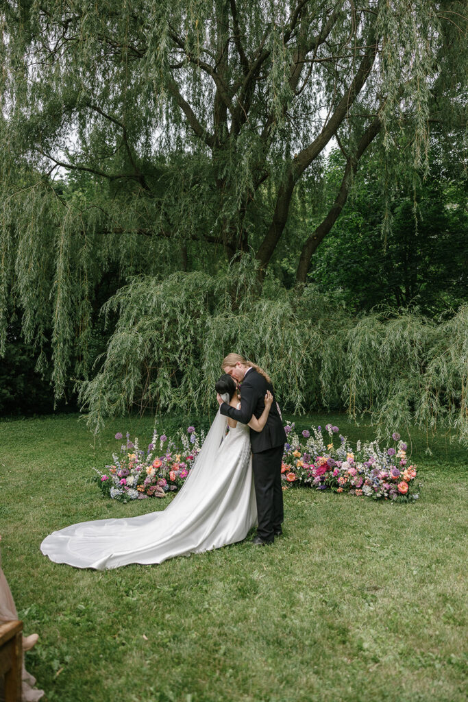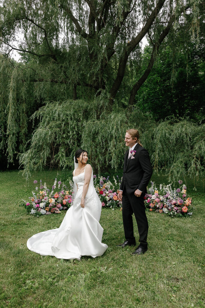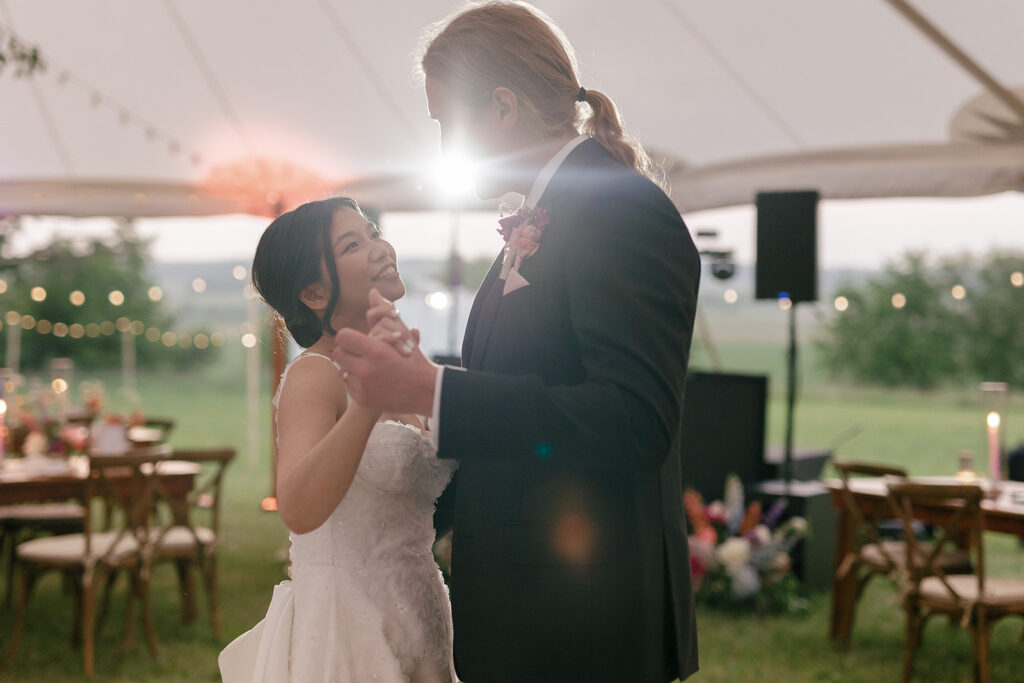 Vicky and Acaya’s June wedding at their private residence in Wisconsin was everything we love about tented weddings on private properties: the most personal, vibrant, and full of thoughtful details that told their story. We also love private property weddings because we can really build anything from the ground up with some blood, sweat, and (let’s be honest) tears. But all that work is always worth it.