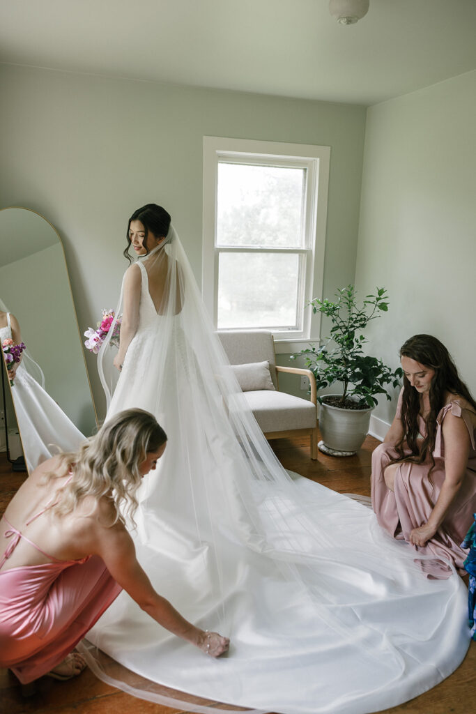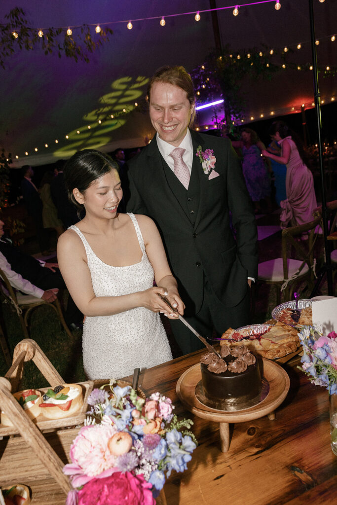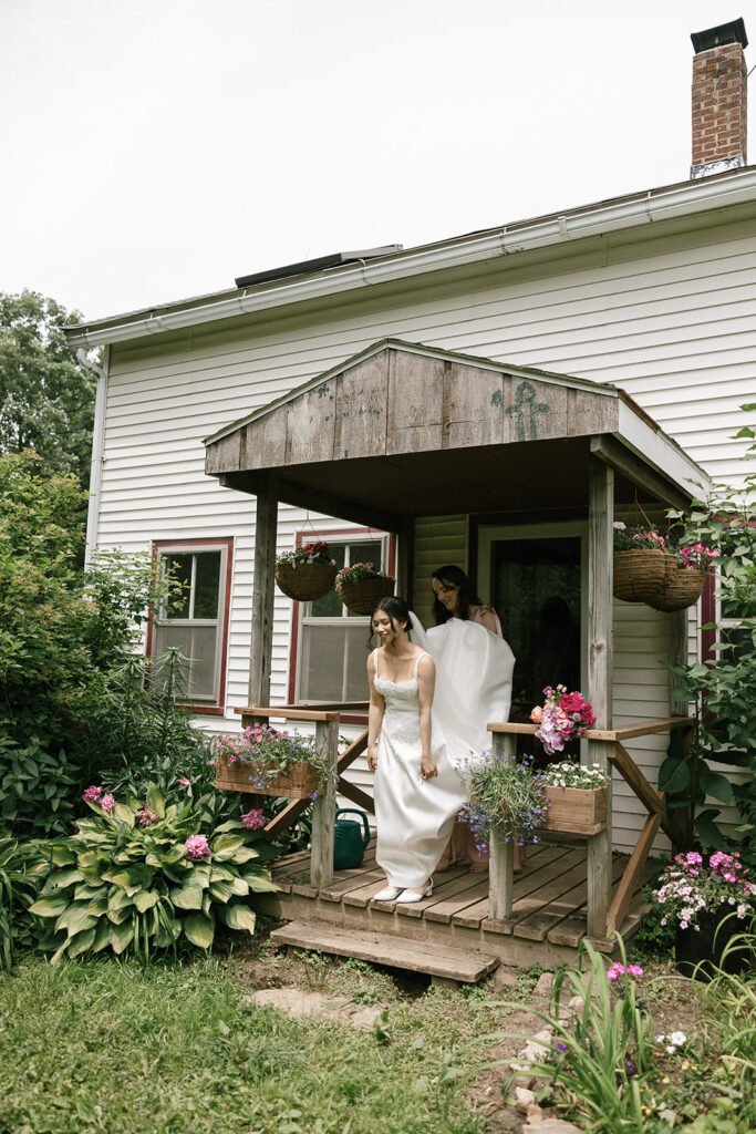 Vicky and Acaya bought the farm from Acaya’s mom and made it their own by updating the barn, adding a greenhouse, and inherited all 59 animals (and counting). For the wedding, we brought in a sailcloth tent for the reception, used the barn for cocktail hour, and set up the ceremony in a grassy area surrounded by mature trees and gardens.